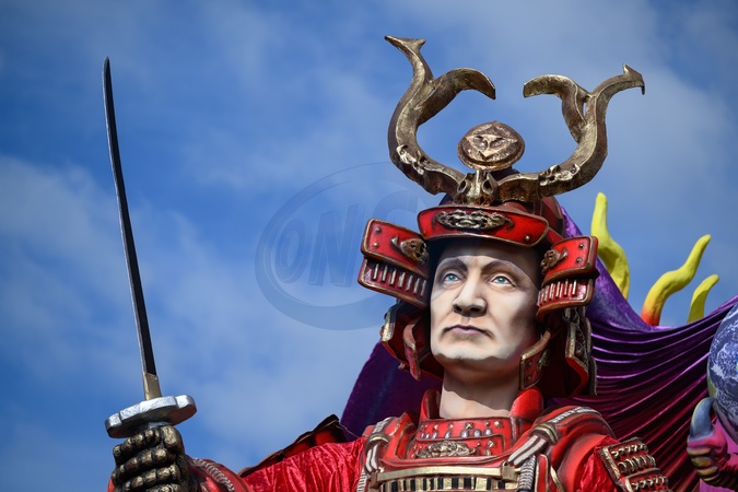 First masked parade of the Viareggio Carnival 2026. In the photo, the first category float "The Samurai of Power" by Luigi Bonetti with the masks of Trump, Putin and Xi Jinping dressed as samurai . Viareggio, Italy 01 Feb 2026, Credit:Stefano Dalle Luche / Avalon