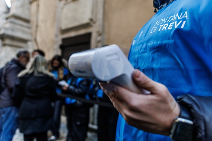February 2, 2026, Rome, First day of paid admission to the Trevi Fountain. Pictured is the POS terminal., Credit:Francesco Fotia / Avalon