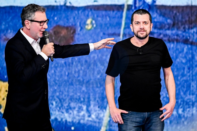 February 1, 2026, Milan. TV show "Che Tempo Che Fa." Fabio Fazio, Alberto Trentini, Credit:Nicola Marfisi / Avalon