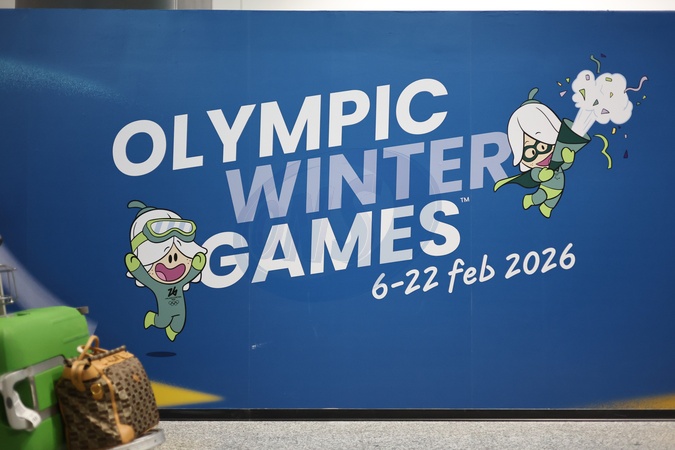 February 2, 2026, Ferno, Italy. Olympic and Paralympic Games - Malpensa Airport. The photo shows the Olympic and Paralympic Games logo and rings, IPC at Malpensa Airport during the accreditation process; the 2026 Winter Olympic Games will be held from February 6 to 22 at various venues in Lombardy and Northeastern Italy., Credit:Pierre Teyssot / Avalon