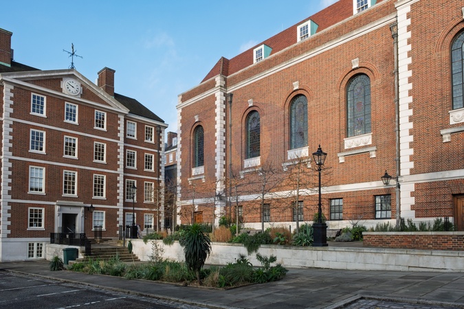 The Inns of Court of the Temple and Temple church, a historic legal area between Fleet Street and the River Thames. London, UK.
