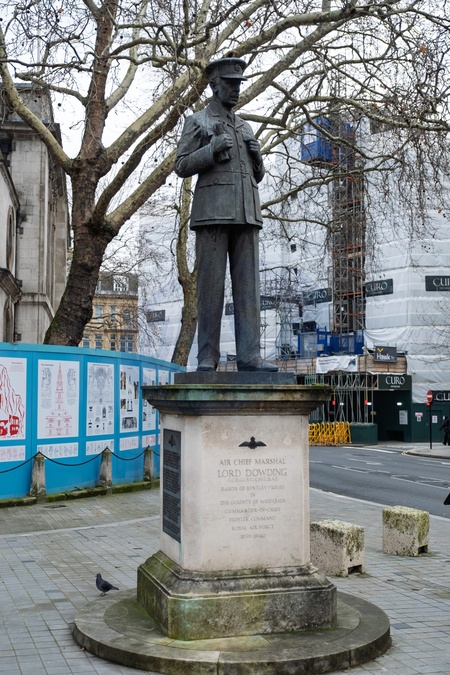 Statue of Air Chief Marshall Lord Dowding outside St Clement Danes church of the RAF in the Strand. london. UK