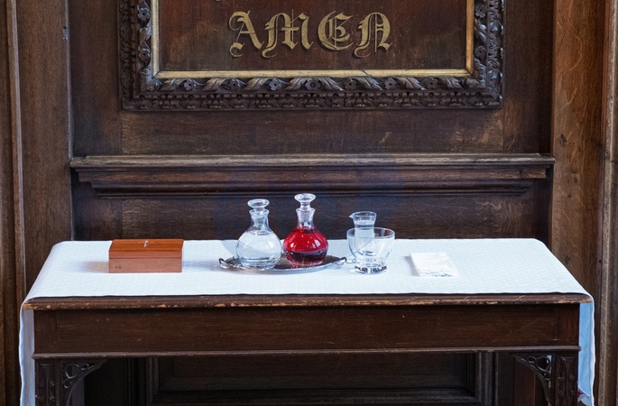 Wine ,water and hosts for communion in the Temple church whose origins date back to the Knights Templar in the twelth century.The Temple and Temple church . United Kingdom. 29 January 2026, Credit:Mark Fairhurst / Avalon