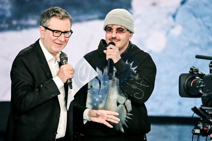 February 1, 2026, Milan. TV show "Che Tempo Che Fa." Geolier, pseudonym of Emanuele Palumbo (Naples, March 23, 2000), Italian rapper. and Fabio Fazio, Credit:Nicola Marfisi / Avalon