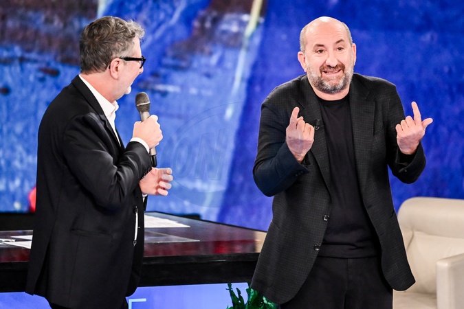 February 1, 2026, Milan. TV show "Che Tempo Che Fa." Fabio Fazio, Antonio Albanese, Credit:Nicola Marfisi / Avalon