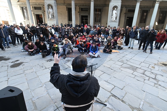 February 1, 2026, Florence. Tomaso Montanari held an open art history lecture in front of the Uffizi Gallery entrance. This initiative was held in support of the Uffizi Gallery's long-time temporary workers who are now unemployed. The event, attended by several hundred people, was organized by SUDD (Union of Democracy and Dignity), COBAS, and Arci Firenze..., Credit:Aleandro Biagianti / Avalon