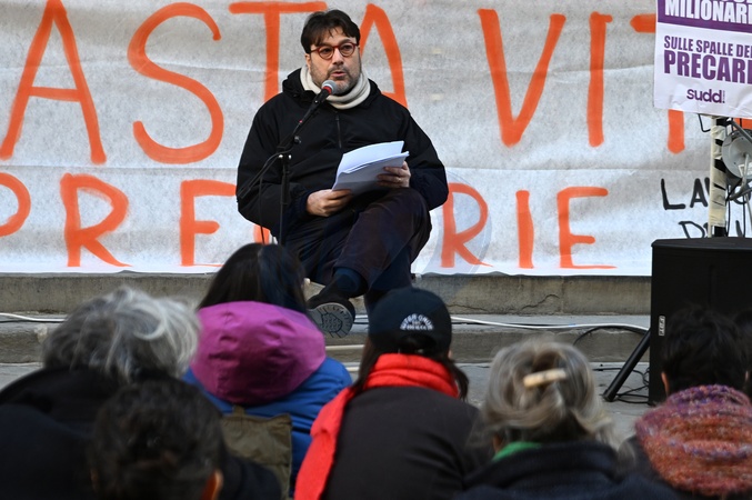 February 1, 2026, Florence. Tomaso Montanari held an open art history lecture in front of the Uffizi Gallery entrance. This initiative was held in support of the Uffizi Gallery's long-time temporary workers who are now unemployed. The event, attended by several hundred people, was organized by SUDD (Union of Democracy and Dignity), COBAS, and Arci Firenze..., Credit:Aleandro Biagianti / Avalon