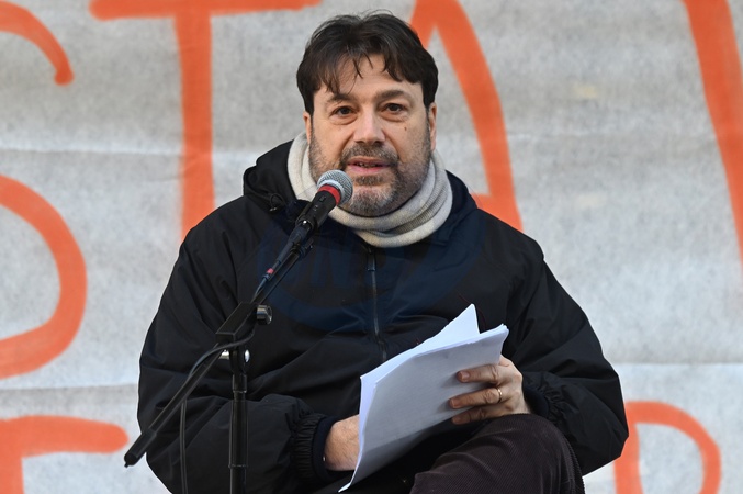 February 1, 2026, Florence. Tomaso Montanari held an open art history lecture in front of the Uffizi Gallery entrance. This initiative was held in support of the Uffizi Gallery's long-time temporary workers who are now unemployed. The event, attended by several hundred people, was organized by SUDD (Union of Democracy and Dignity), COBAS, and Arci Firenze..., Credit:Aleandro Biagianti / Avalon