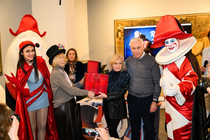 Rita Pavone receives the Ondina D'Oro award at the 2026 Viareggio Carnival from the President of the Carnival Foundation, Maria Lina Marcucci, and the Mayor of Viareggio, Giorgio Del Gingaro. Viareggio, Italy 01 Feb 2026, Credit:Stefano Dalle Luche / Avalon