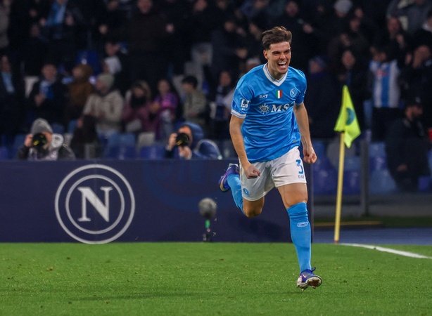 Diego Armando Maradona Stadium, Serie A, SSC Napoli vs. AC Fiorentina. Pictured: Goal by Napoli's Miguel Gutierrez. Naples, Italy 31 January 2026, Credit:Fabio Sasso / Avalon