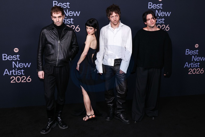 WEST HOLLYWOOD, LOS ANGELES, CALIFORNIA, USA - JANUARY 29: Jesse Perlman, Maria Zardoya, Josh Conway and Edward James of The Marias arrive at Spotify's 2026 Best New Artist Party (68th Annual Grammy Awards) held at The Lot at Formosa on January 29, 2026 in West Hollywood, Los Angeles, California, United States., Credit:Kay Qiao / Avalon