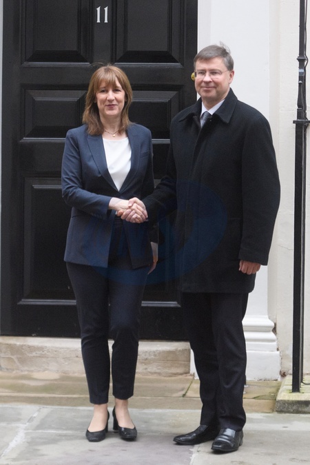 Valdis Dombrovskis - European Commissioner for Economy and Productivity arrives for a meeting and poses with Rachel Reeves - Chancellor of The Exchequer at Downing Street, London, England, UK on Monday 2 February, 2026., Credit:Justin Ng / Avalon