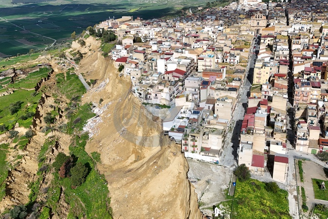 February 2, 2026, Niscemi (Caltanissetta). Another ten meters of erosion in seven days. The landslide advances inland, the collapses continue, and an entire building collapsed two days ago., Credit:FORTUNATE SERRANO' / Avalon