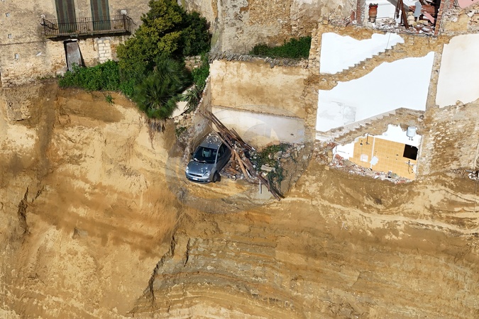 February 2, 2026, Niscemi (Caltanissetta). Another ten meters of erosion in seven days. The landslide advances inland, the collapses continue, and an entire building collapsed two days ago., Credit:FORTUNATE SERRANO' / Avalon