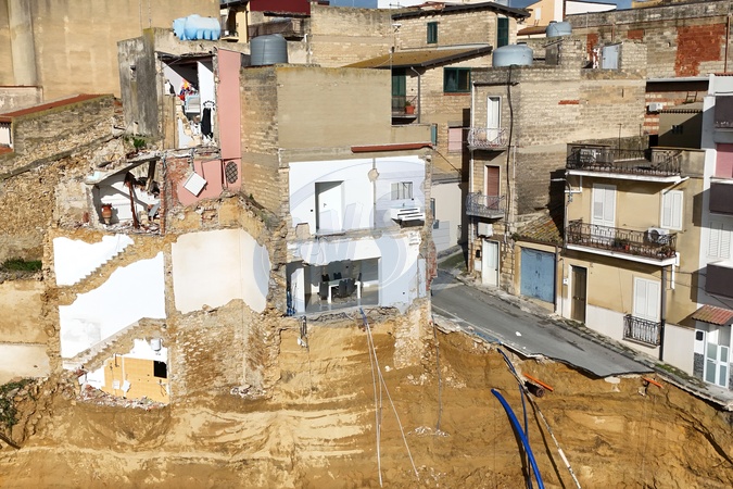 February 2, 2026, Niscemi (Caltanissetta). Another ten meters of erosion in seven days. The landslide advances inland, the collapses continue, and an entire building collapsed two days ago., Credit:FORTUNATE SERRANO' / Avalon