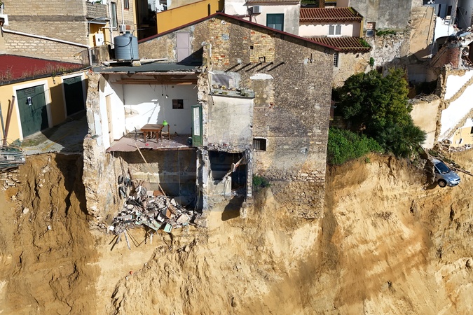 February 2, 2026, Niscemi (Caltanissetta). Another ten meters of erosion in seven days. The landslide advances inland, the collapses continue, and an entire building collapsed two days ago., Credit:FORTUNATE SERRANO' / Avalon
