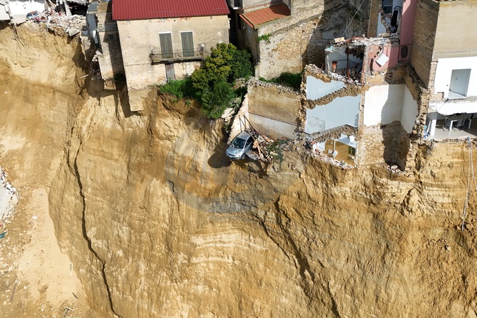 February 2, 2026, Niscemi (Caltanissetta). Another ten meters of erosion in seven days. The landslide advances inland, the collapses continue, and an entire building collapsed two days ago., Credit:FORTUNATE SERRANO' / Avalon