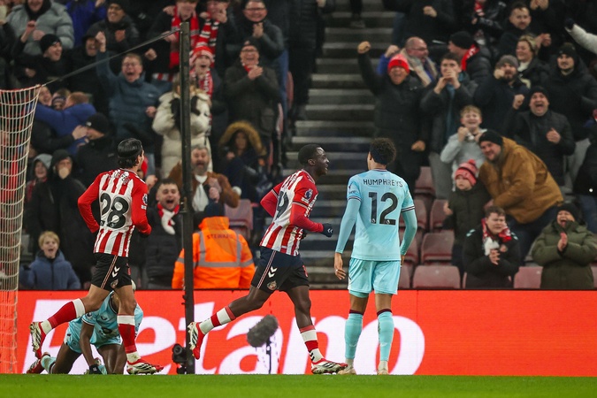 Habib Diarra of Sunderland celebrates his goal to make it 2-0 during the Premier League match Sunderland vs Burnley at Stadium Of Light, Sunderland, United Kingdom, 2nd February 2026, Credit:Ae Cosgrove/News Images / Avalon