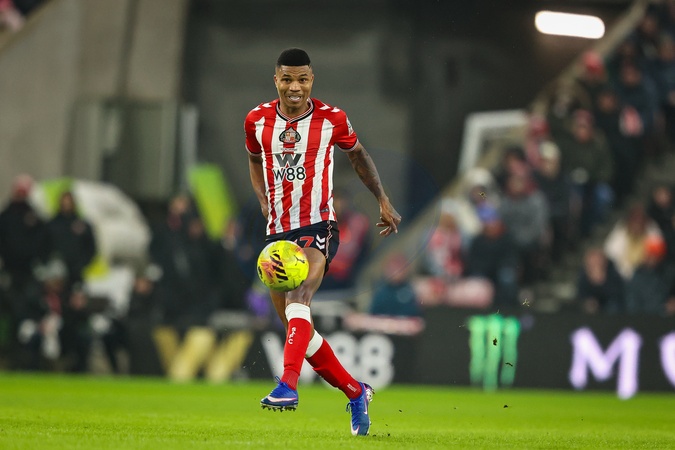 Reinildo Mandava of Sunderland controls the ball during the Premier League match Sunderland vs Burnley at Stadium Of Light, Sunderland, United Kingdom, 2nd February 2026, Credit:Ae Cosgrove/News Images / Avalon