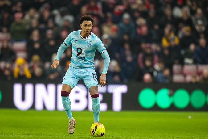 Bashir Humphreys of Burnley makes a run with the ball during the Premier League match Sunderland vs Burnley at Stadium Of Light, Sunderland, United Kingdom, 2nd February 2026, Credit:Ae Cosgrove/News Images / Avalon