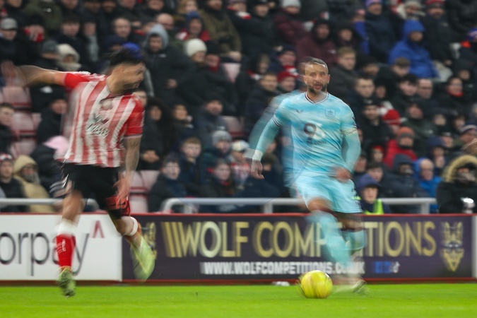 Kyle Walker of Burnley makes a run with the ball during the Premier League match Sunderland vs Burnley at Stadium Of Light, Sunderland, United Kingdom, 2nd February 2026, Credit:Ae Cosgrove/News Images / Avalon