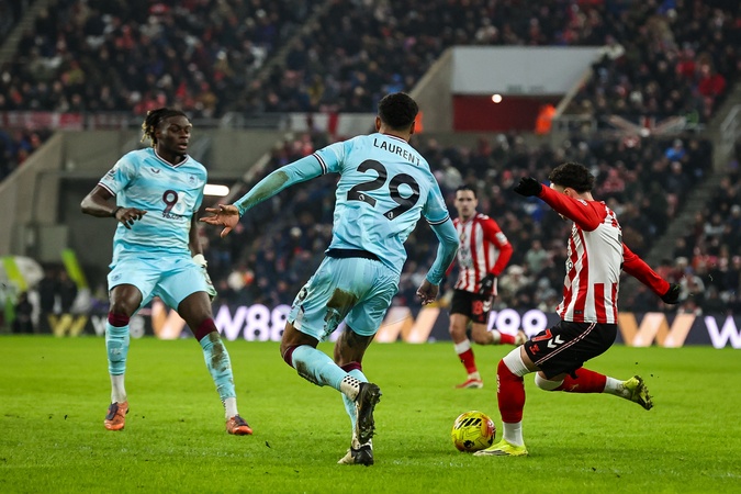 Chemsdine Talbi of Sunderland scores to make it 3-0 during the Premier League match Sunderland vs Burnley at Stadium Of Light, Sunderland, United Kingdom, 2nd February 2026, Credit:Ae Cosgrove/News Images / Avalon