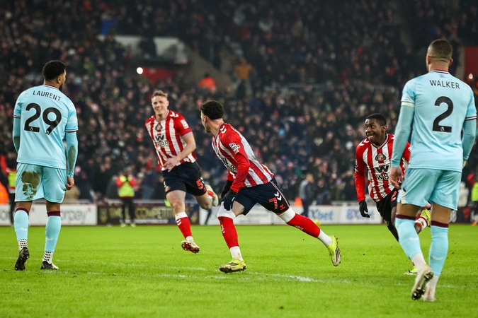 Chemsdine Talbi of Sunderland celebrates his goal to make it 3-0 during the Premier League match Sunderland vs Burnley at Stadium Of Light, Sunderland, United Kingdom, 2nd February 2026, Credit:Ae Cosgrove/News Images / Avalon