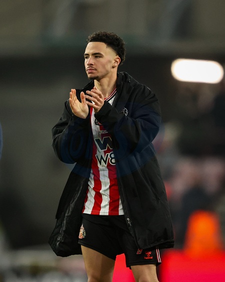 Chemsdine Talbi of Sunderland applauds the fans after the final whistle during the Premier League match Sunderland vs Burnley at Stadium Of Light, Sunderland, United Kingdom, 2nd February 2026, Credit:Ae Cosgrove/News Images / Avalon