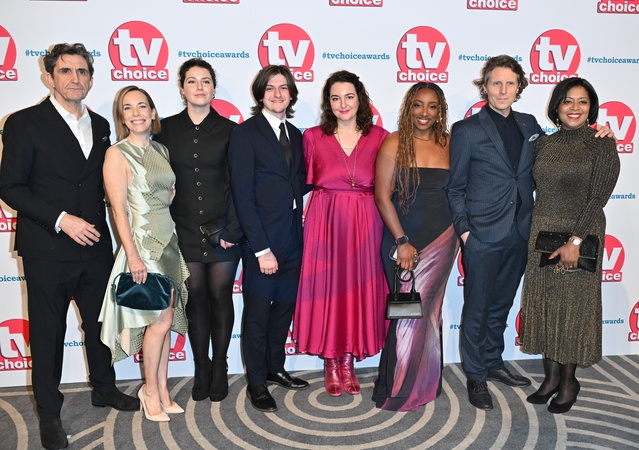 London, UK, 02 February 2026. (L to R) Stephen McGann, Laura Main, Beren Saat, Max Macmillan, Rebecca Gethings, Renee Bailey, Christopher Harper and Linda Hargreaves attend the TV Choice Awards 2026 at the The London Hilton, Park Lane, London, UK., Credit:Lee Floyd / Avalon