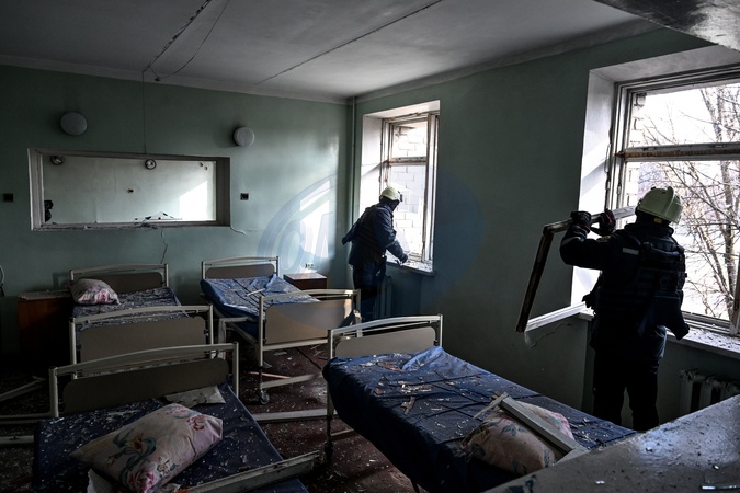 Rescuers work inside a maternity hospital ward after a Russian drone attack damaged the medical facility in Zaporizhzhia, Ukraine, on February 1, 2026. A fire broke out on one of the floors, leaving at least six people injured, Credit:Dmytro Smolienko / Avalon