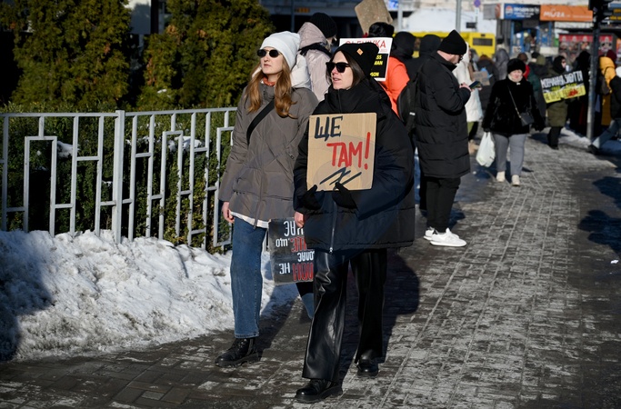 Activists hold placards during the "Don't Be Silent! Captivity Kills” rally held to draw attention to prisoners of war from the Mariupol garrison, all prisoners of war and missing Ukrainian defenders in Kyiv, Ukraine, on February 1, 2026, Credit:Yevhen Kotenko / Avalon