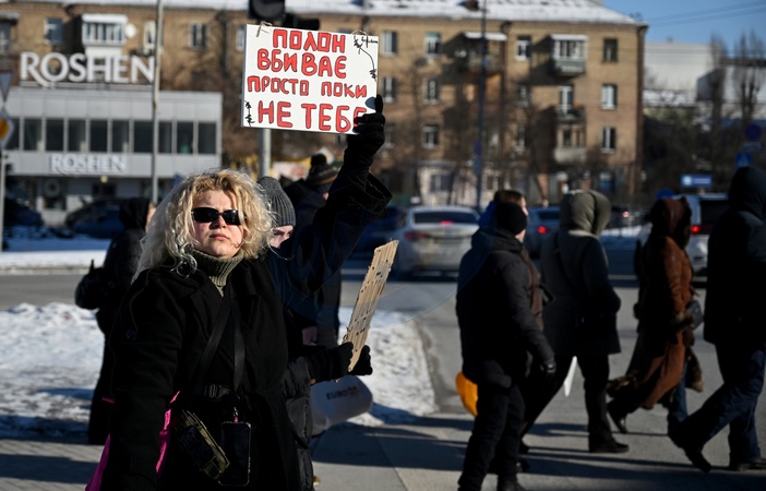 Activists hold placards during the "Don't Be Silent! Captivity Kills” rally held to draw attention to prisoners of war from the Mariupol garrison, all prisoners of war and missing Ukrainian defenders in Kyiv, Ukraine, on February 1, 2026, Credit:Yevhen Kotenko / Avalon