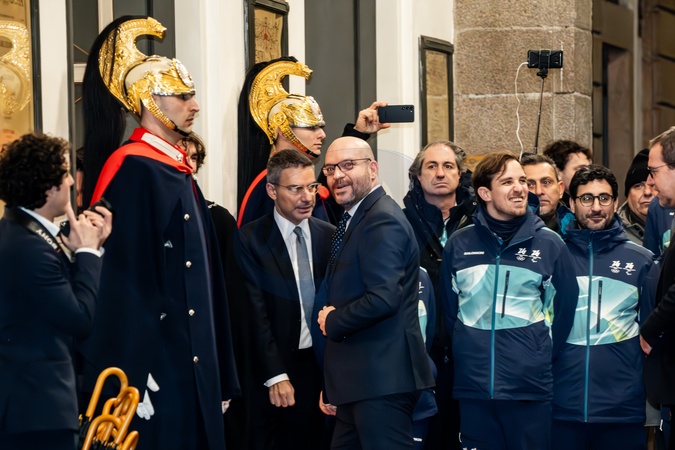 February 2, 2026, Milan. Piazza Scala, Arrival of Olympic delegations for the Opening Ceremony of the 145th IOC Session. Lorenzo Fontana, President of the Chamber of Deputies of the Italian Republic., Credit:Nicola Marfisi / Avalon