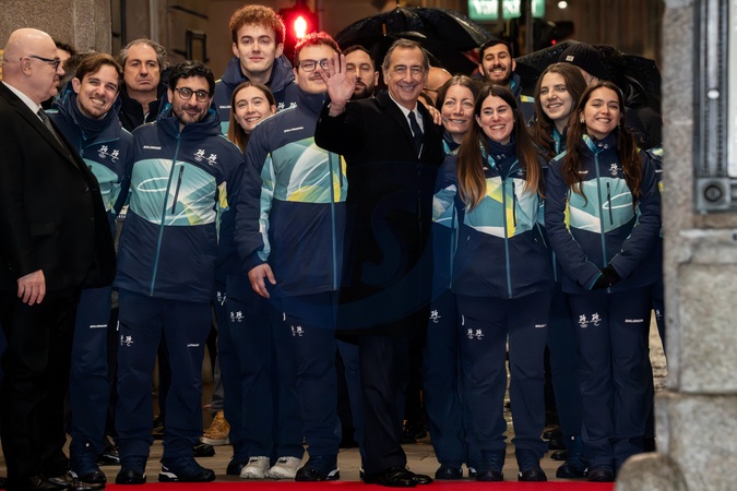 February 2, 2026, Milan. Piazza Scala, Arrival of Olympic delegations for the Opening Ceremony of the 145th IOC Session. On the left, Fortunato Ortombina, Superintendent and Artistic Director of the Teatro alla Scala, and Giuseppe Sala, Mayor of Milan., Credit:Nicola Marfisi / Avalon
