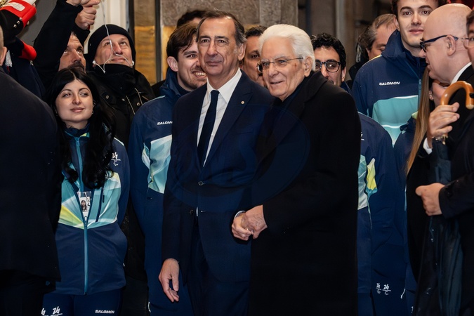 February 2, 2026, Milan. Piazza Scala, Olympic delegations arrive for the opening ceremony of the 145th IOC Session. President Sergio Mattarella with Giuseppe Sala, Mayor of Milan., Credit:Nicola Marfisi / Avalon