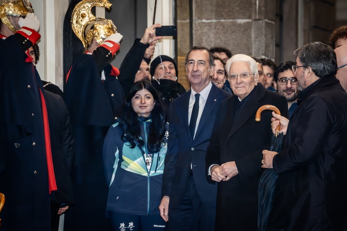 February 2, 2026, Milan. Piazza Scala, Olympic delegations arrive for the opening ceremony of the 145th IOC Session. President Sergio Mattarella with Giuseppe Sala, Mayor of Milan., Credit:Nicola Marfisi / Avalon
