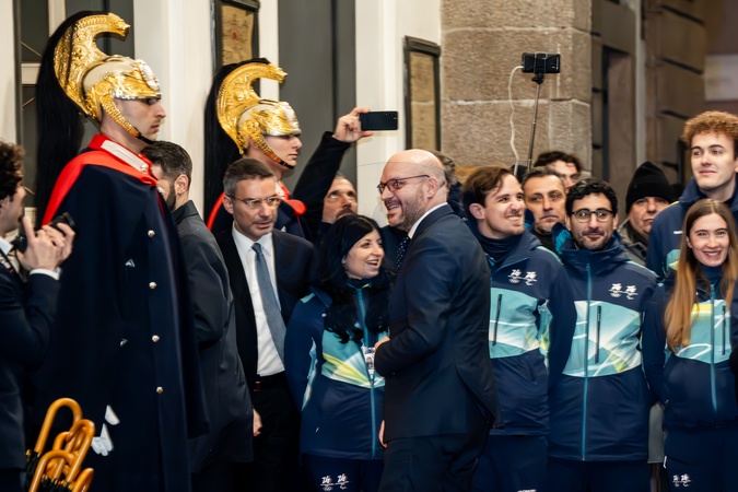 February 2, 2026, Milan. Piazza Scala, Arrival of Olympic delegations for the Opening Ceremony of the 145th IOC Session. Lorenzo Fontana, President of the Chamber of Deputies of the Italian Republic., Credit:Nicola Marfisi / Avalon