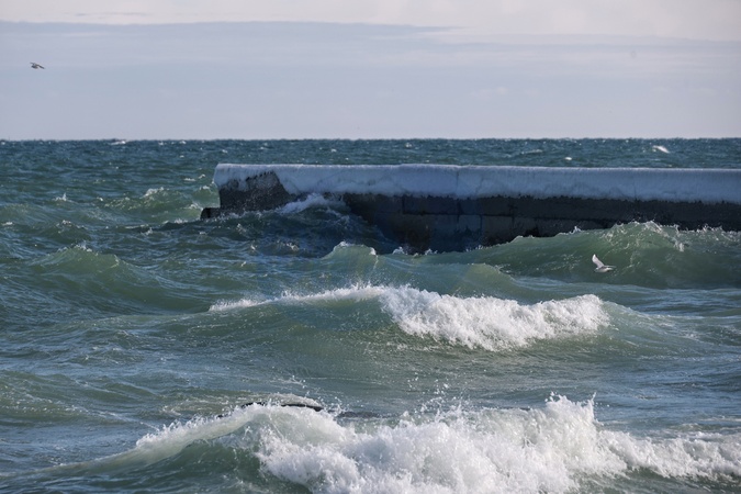 Ice covers a traverse jutting into the Black Sea on a sunny winter day, Odesa, Ukraine, February 2, 2026., Credit:Nina Liashonok / Avalon