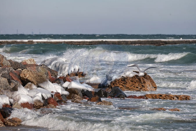 The waves of the Black Sea wash over ice-covered rocks on a sunny winter day, Odesa, Ukraine, February 2, 2026., Credit:Nina Liashonok / Avalon