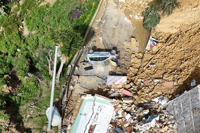 February 3, 2026, Niscemi (CL), Landslide in the town of Niscemi, 1,500 people evacuated and a red zone established. Pictured is the car that had been teetering on the ravine for several days, which fell during the night., Credit:Fortunato Serrano' / Avalon