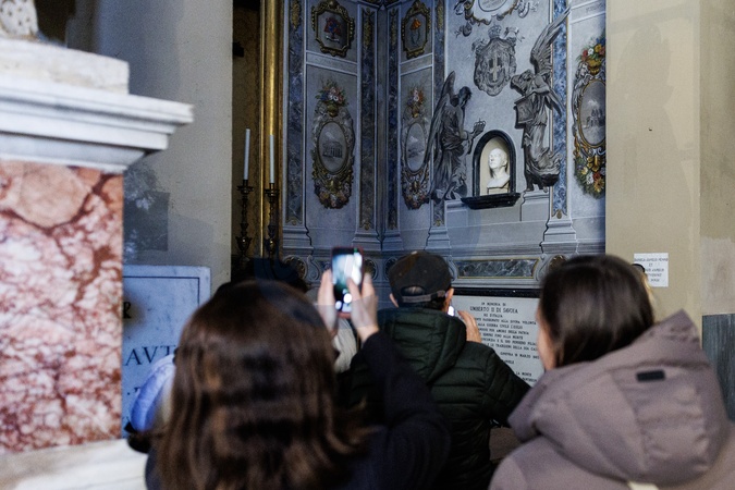 A queue of onlookers gathered at the Basilica of San Lorenzo in Lucina for a fresco depicting Giorgia Meloni.