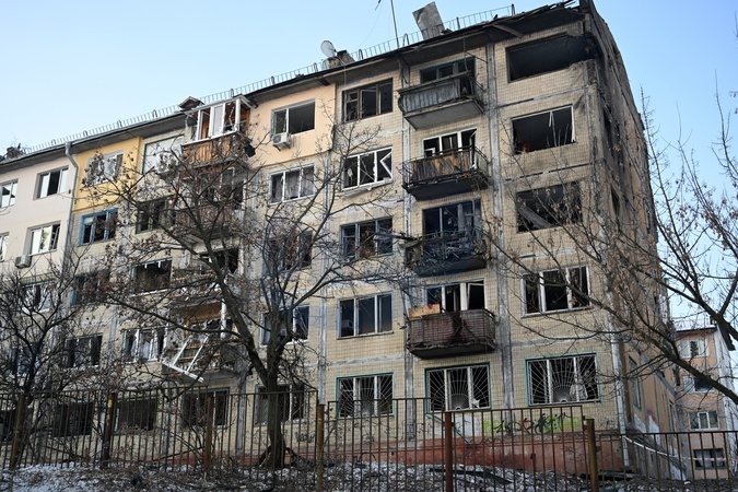 A five-storey apartment block is damaged by a Russian drone strike in the Dniprovskyi district of Kyiv, Ukraine, February 3, 2026. Russia's massive nighttime attack on Kyiv's energy infrastructure left part of the city's left bank without heating. The most difficult situation is in the Darnytskyi and Dniprovskyi districts. Emergency power outages have also been implemented on the left bank., Credit:EVGEN_KOTENKO / Avalon