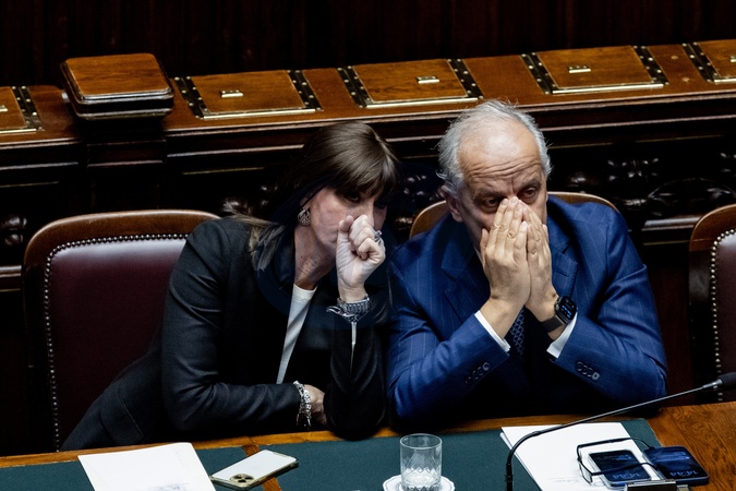 Chamber, Urgent briefing from the Minister of the Interior on the clashes that occurred during the pro-Askatasuna march in Turin. Pictured are the Minister of the Interior Matteo Piantedosi and the Minister of University and Research Anna Maria Bernini. Rome, Italy 03 Feb 2026, Credit:Francesco Fotia / Avalon