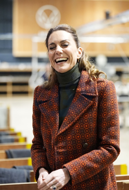 The Princess of Wales during a visit to Hiut Denim, a family-owned company based in Cardigan, designing and manufacturing premium jeans entirely in the UK. Hiut was founded in 2011 to bring the knowledge and skill of jean-making back to Cardigan, where production began in the 1960s. Picture date: Tuesday February 3, 2026., Credit:Aaron Chown / Avalon