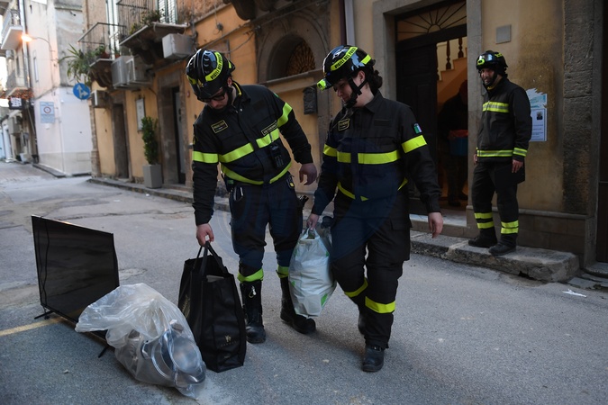 Firefighters continue their work to recover property following the 4km landslide. Pictured are firefighters working to help locals recover their belongings. Niscemi, Italy 03 Feb 2026, Credit:Fortunato Serrano' / Avalon
