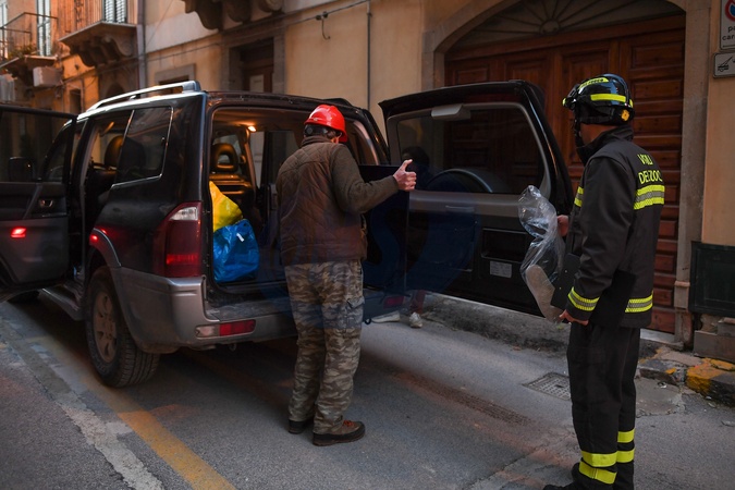 Firefighters continue their work to recover property following the 4km landslide. Pictured are firefighters working to help locals recover their belongings. Niscemi, Italy 03 Feb 2026, Credit:Fortunato Serrano' / Avalon