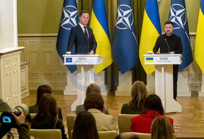 NATO Secretary General Mark Rutte (L) and President of Ukraine Volodymyr Zelenskyy attend a joint press conference after talks on Patriot missile deliveries, the PURL program and Euro-Atlantic cooperation, Kyiv, Ukraine, on February 3, 2026, Credit:Pavlo Bahmut / Avalon