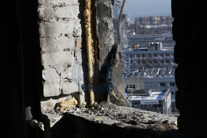 The interior of a residential building damaged in a Russian strike on January 22 is pictured following emergency dismantling works, Dnipro, Ukraine, on February 3, 2026, Credit:Mykola Miakshykov / Avalon