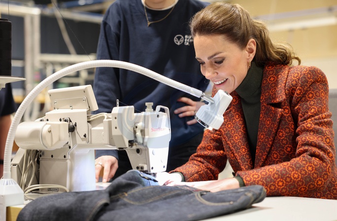 03/02/2026. Cardigan, UK. The Princess of Wales during a visit to Hiut Denim, a family-owned company based in Cardigan, designing and manufacturing premium jeans entirely in the UK.The Princess met Johann Von Loeper, Hiut's CEO and then followed the jeans production process and met the teams working across design, cutting and making, alongside four trainees who represent the next generation of British denim craftsmanship., Credit:Pete Maclaine / Avalon