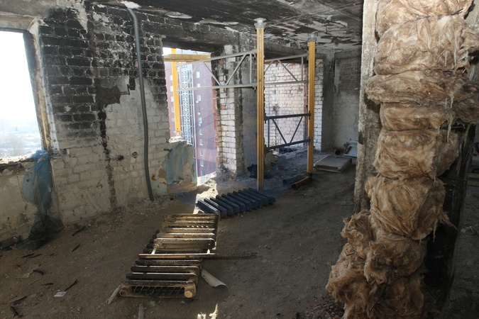 The interior of a residential building damaged in a Russian strike on January 22 is pictured following emergency dismantling works, Dnipro, Ukraine, on February 3, 2026, Credit:Mykola Miakshykov / Avalon